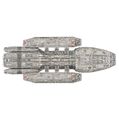The Mercury-class Battlestar Pegasus was vast - at almost twice Galactica's size - and fully automated with the Command Navigation Program. This warship was a force among Battlestars, and one of the only two to survive the Cylon attack on the Colonies. The Pegasus shares many design features with the Galactica, but it is a more technologically advanced ship. Nicknamed 'The Beast', this warship has a power-plant befitting its name, employing right sublight engines for propulsion. In addition to maneuvering thrusters, it also has a hyperjump FTL core engine.