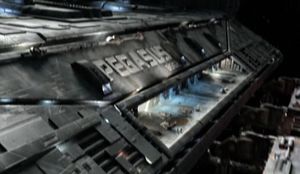 ''Galacticas'' Landebuchten keine [[Gravitation in der neu-interpretierten Serie |künstliche Schwerkraft]] verwenden zu scheinen, könnte das auch auf die der ''Pegasus'' zutreffen. Die interne Anordnung der Hangardecks ist nicht bekannt, aber ein Mechanismus könnte bestehen, der eine Viper während des Transports zum inneren Hangar dreht. | ''Galacticas'' Landebuchten keine [[Gravitation in der neu-interpretierten Serie |künstliche Schwerkraft]] verwenden zu scheinen, könnte das auch auf die der ''Pegasus'' zutreffen. Die interne Anordnung der Hangardecks ist nicht bekannt, aber ein Mechanismus könnte bestehen, der eine Viper während des Transports zum inneren Hangar dreht. | ||